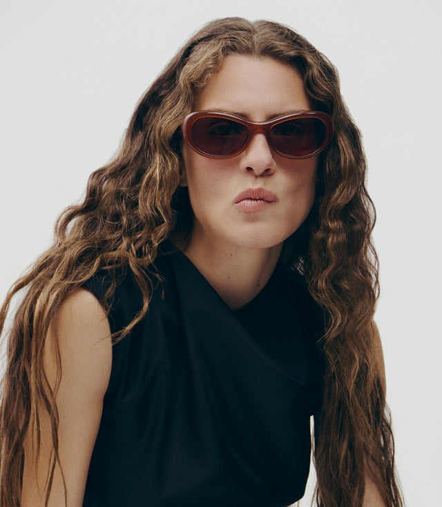 Soeur traslada su pasión por las líneas afirmadas y los colores en una gama de gafas de sol que se compone de tres modelos con sus correspondientes temperamentos. Lee,con su forma de máscara extragrande que se impone con sus líneas escultóricas contemporáneas; Jean de montura ojo de gato, que aporta delicadeza y feminidad al rostro; Amber con su marco metálico afilado, que encarna los trazos discretos de los años noventa.
