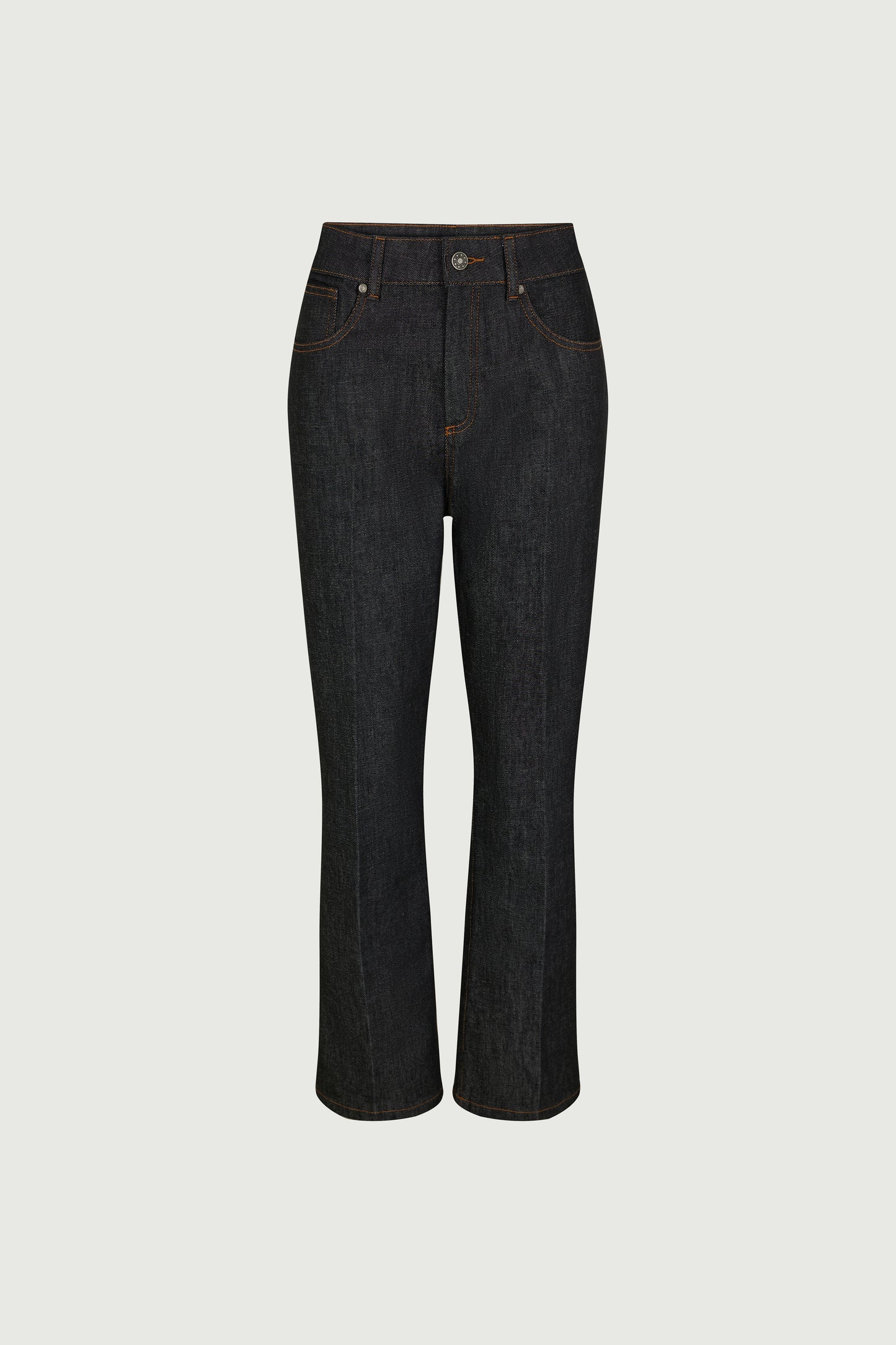 - Corte ajustado y acampanado en la parte inferior de la pierna