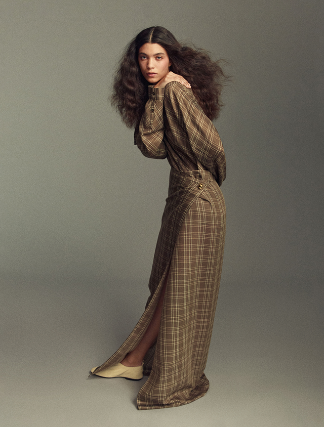 La mannequin mide 1m78 (5'10) y usa una talla 38.
