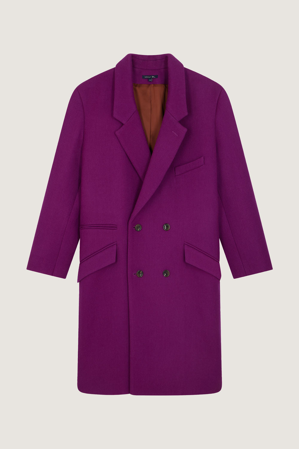 Abrigo de sarga de lana virgen - Abrigo de largo medio con volumen recto- Cuello sastre- Tira de botones en la parte delantera- Gran abertura trasera