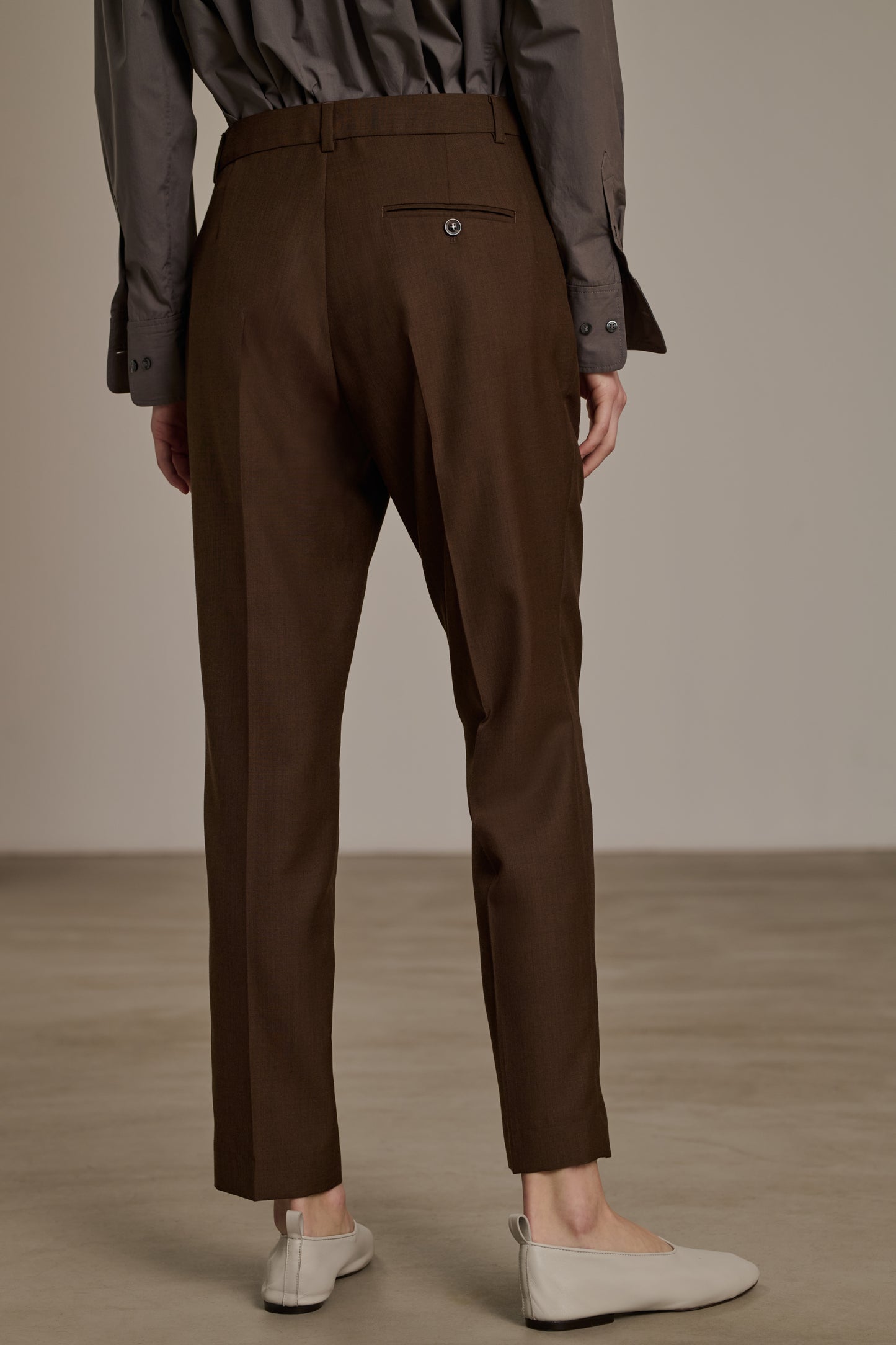ADELE es un pantalón ajustado tipo pitillo, para crear una silueta cercana al cuerpo con un corte impecable. Su tejido de lana flexible le confiere una caída perfecta.