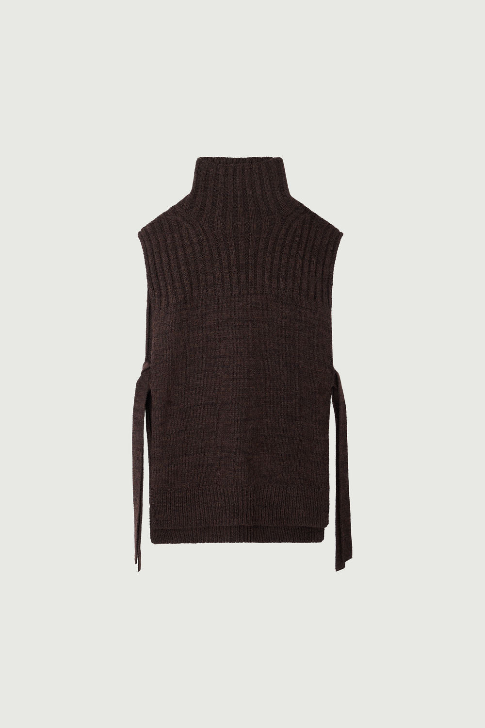 BIARRITZ es un plastrón oversize, tejido en un hilo de lana virgen. Su apariencia visual se debe a un efecto de canalé, con cintas en los lados que pueden llevarse ceñidas para marcar la cintura, o dejarlas colgando. Una prenda ideal para dar calidez a un conjunto, como un vestido de seda o una camisa suelta de algodón. Se distingue por un cuello alto que se lleva muy elevado para cubrir el cuello.
